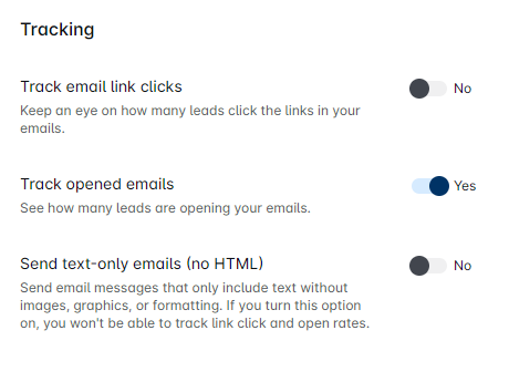 - Send text-only emails (no HTML): Send plain text emails without images or formatting. Keep in mind, tracking won't work if you enable this option.