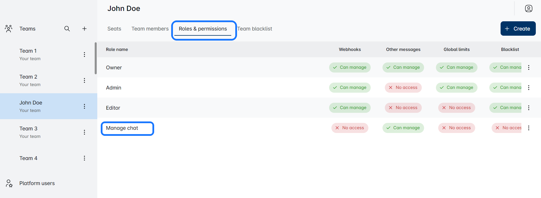 Head to 'Roles & Permissions,' hit 'Create,' and select permissions like campaign management, message handling, or blacklisting. You can even set roles to view-only for observational access. With Custom Roles, you can ensure each team member has the right tools and level of access, enhancing efficiency and organization. Enjoy the flexibility to shape team roles to your exact specifications!✈️🌟
