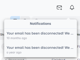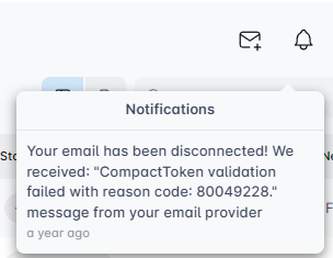 Noticed your email connection keeps dropping? The bell icon will let you know why, offering details about the issue.