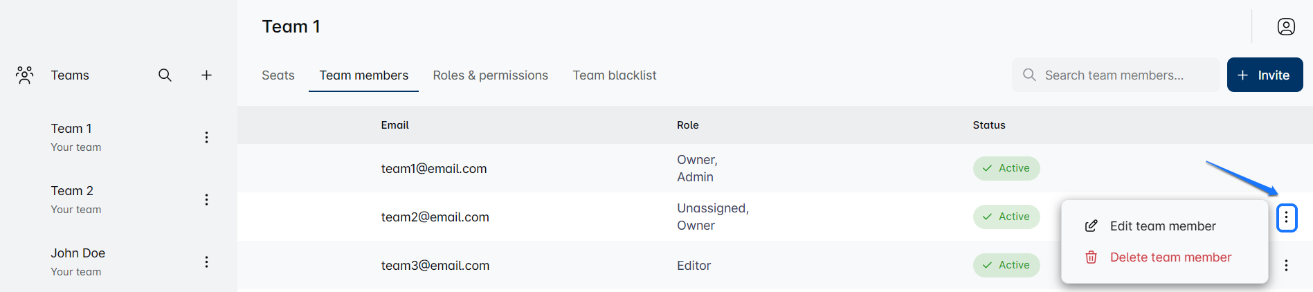 Need to tweak someone’s role? Simply hit the 'Edit team member' button to make changes. For more detailed help, check out our articles on this topic!