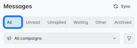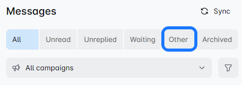 Once you connect your LinkedIn profile to the Switch Jam Digital, this filter shows your non-campaign-based messages. ❗ Messages sent before connecting your account won't appear here.