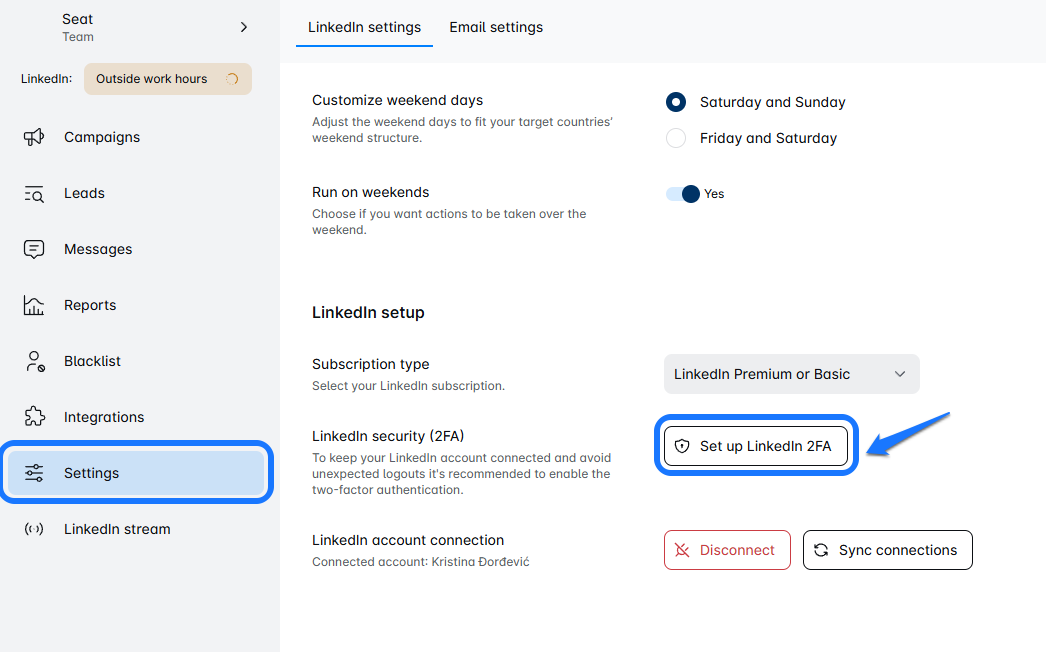 1. Open LinkedIn 2FA Settings in Switch Jam Digital ⚙️